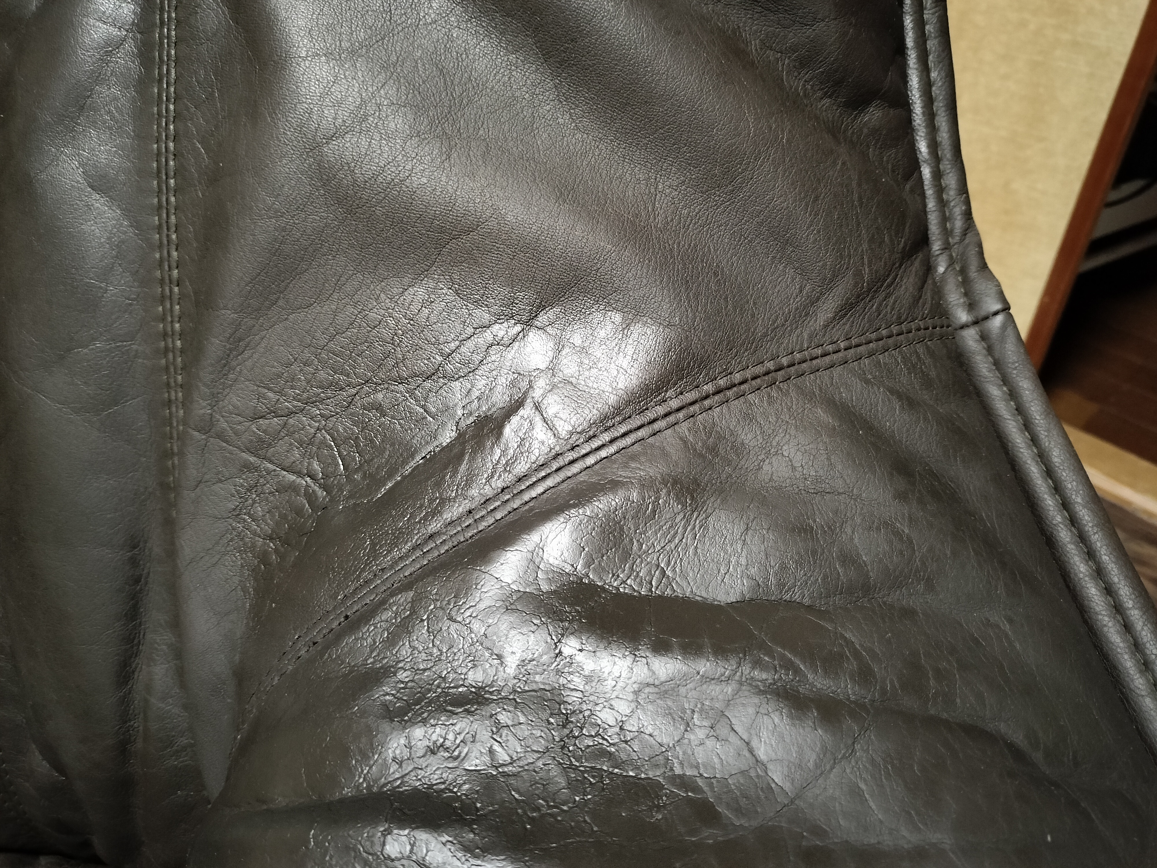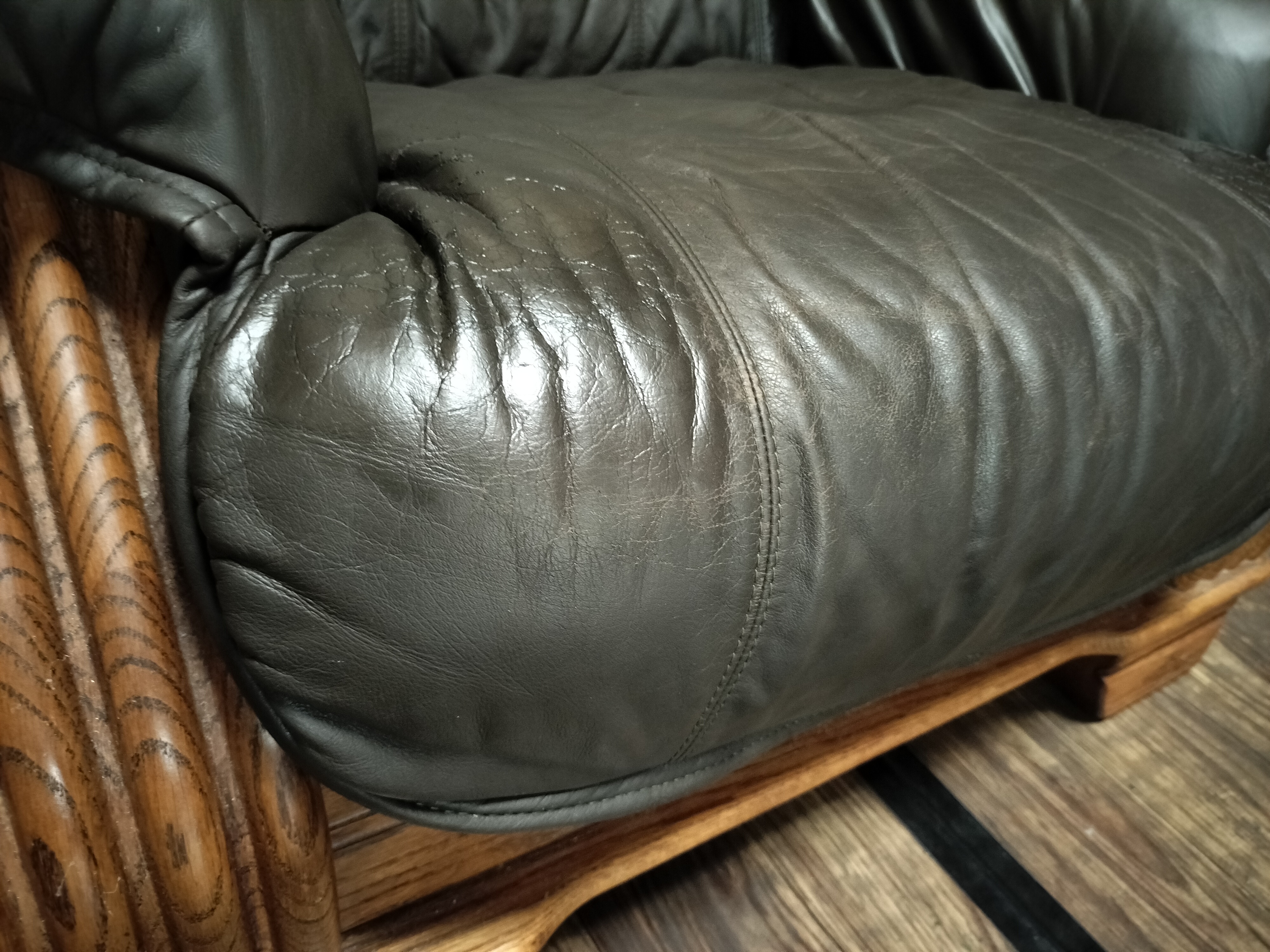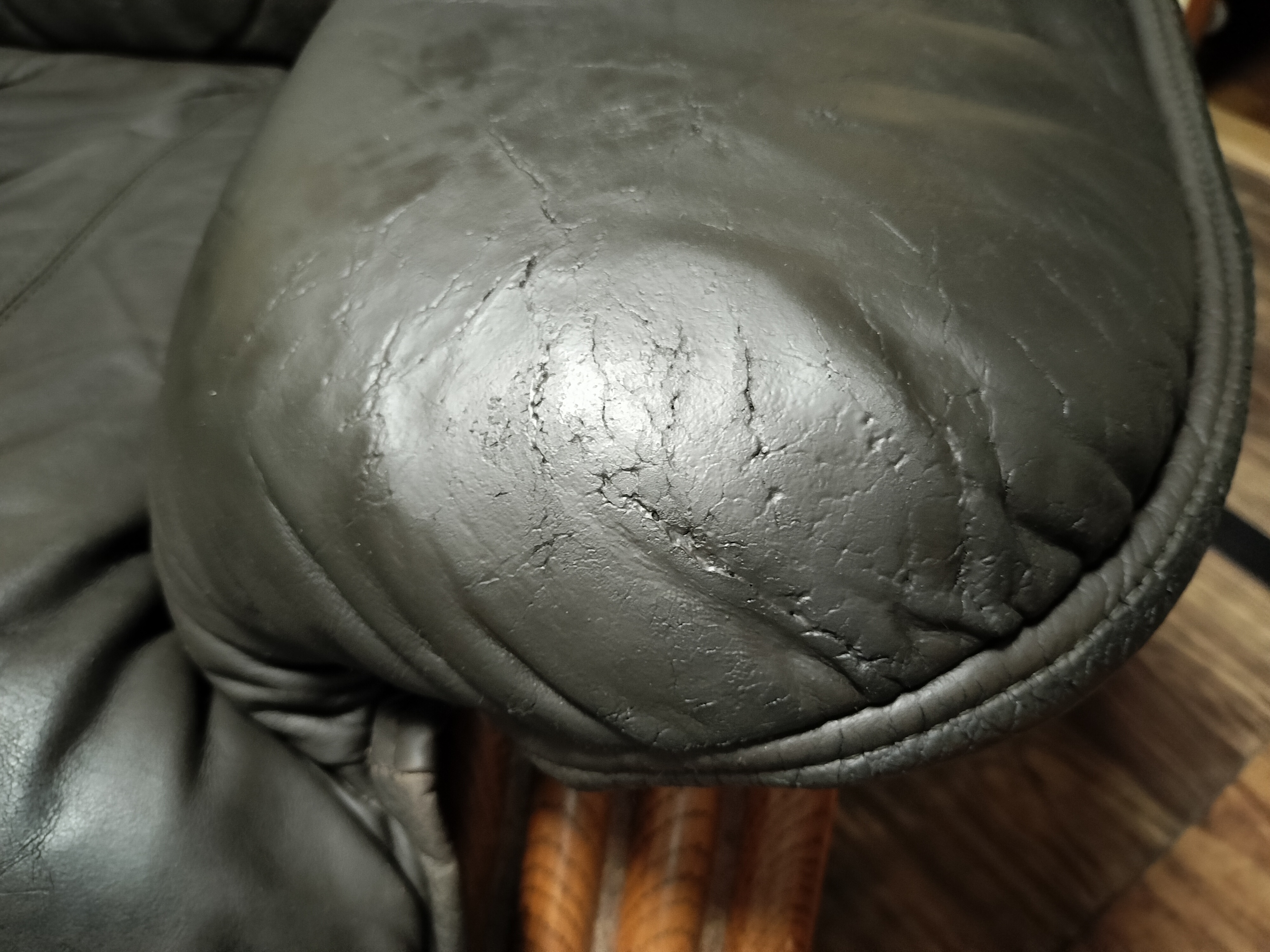 座面の前方の革が劣化してきています。