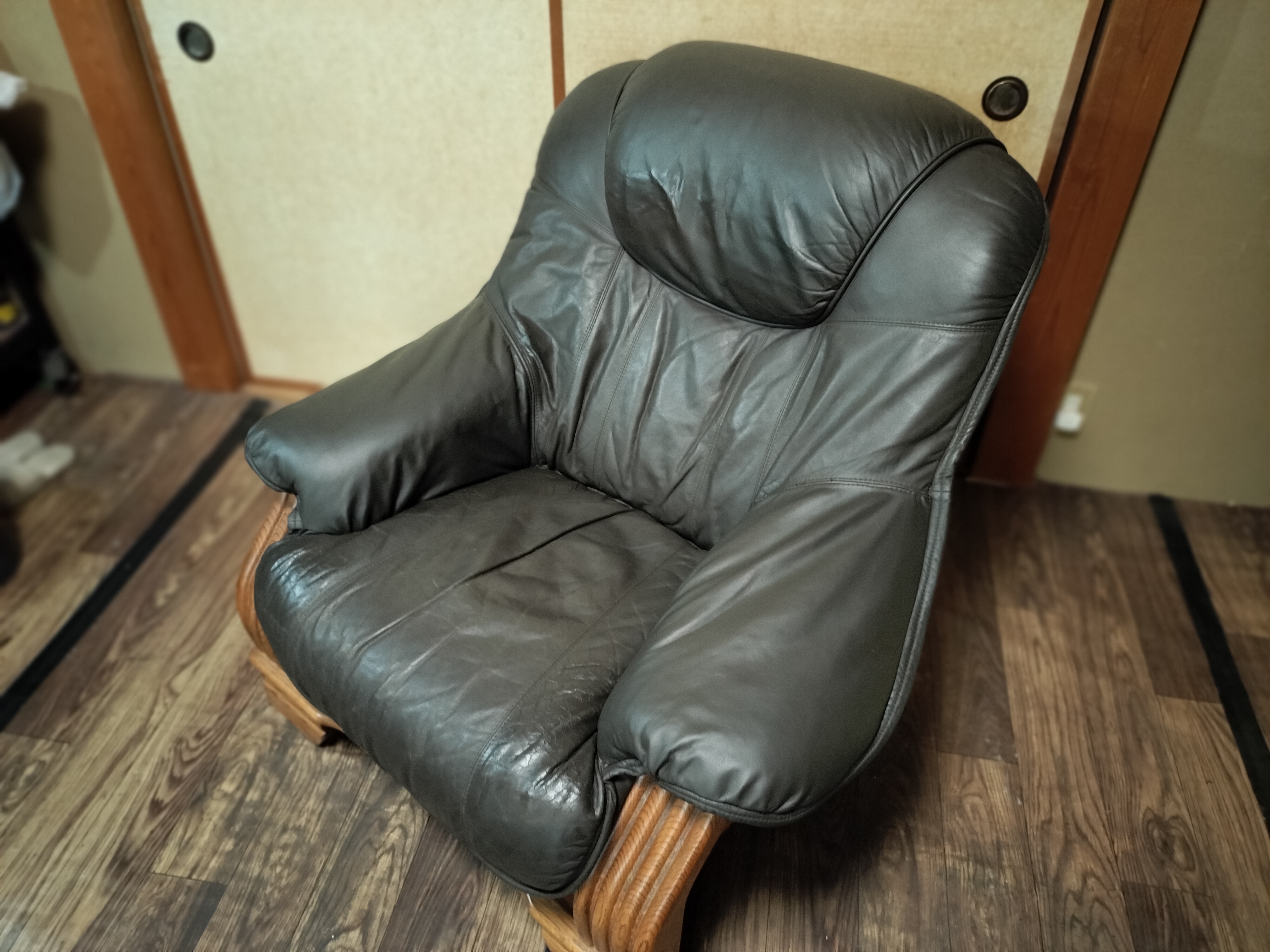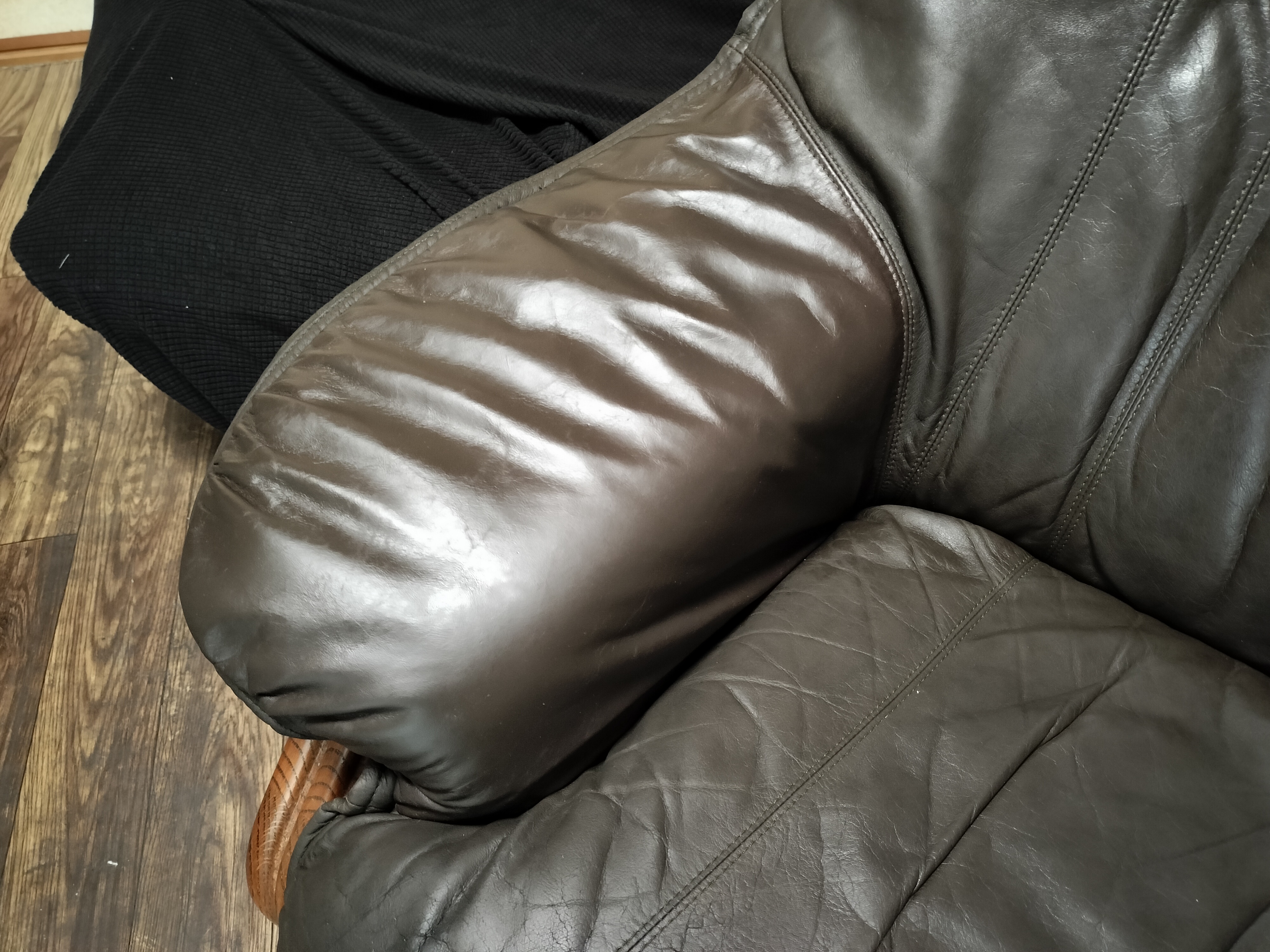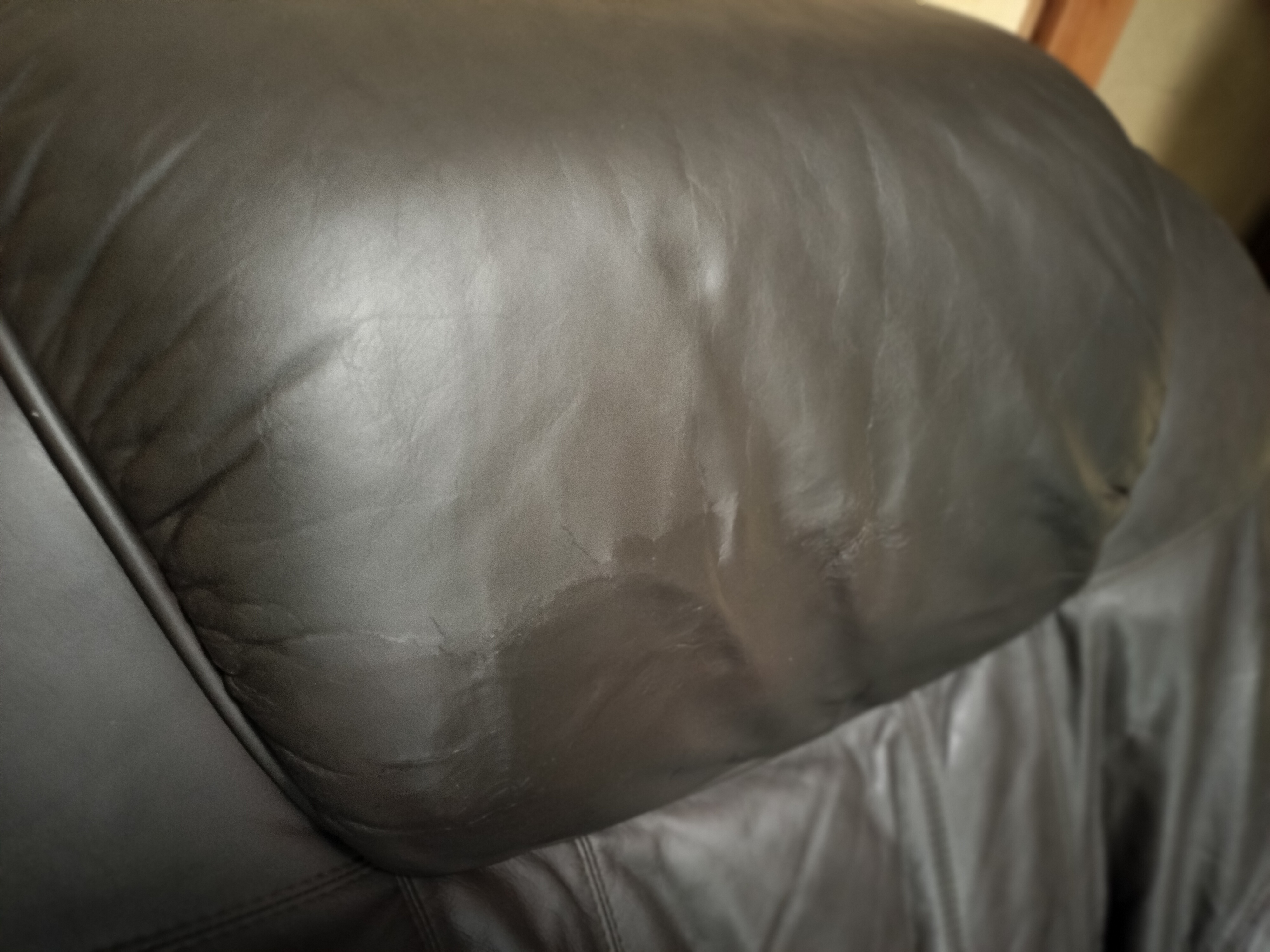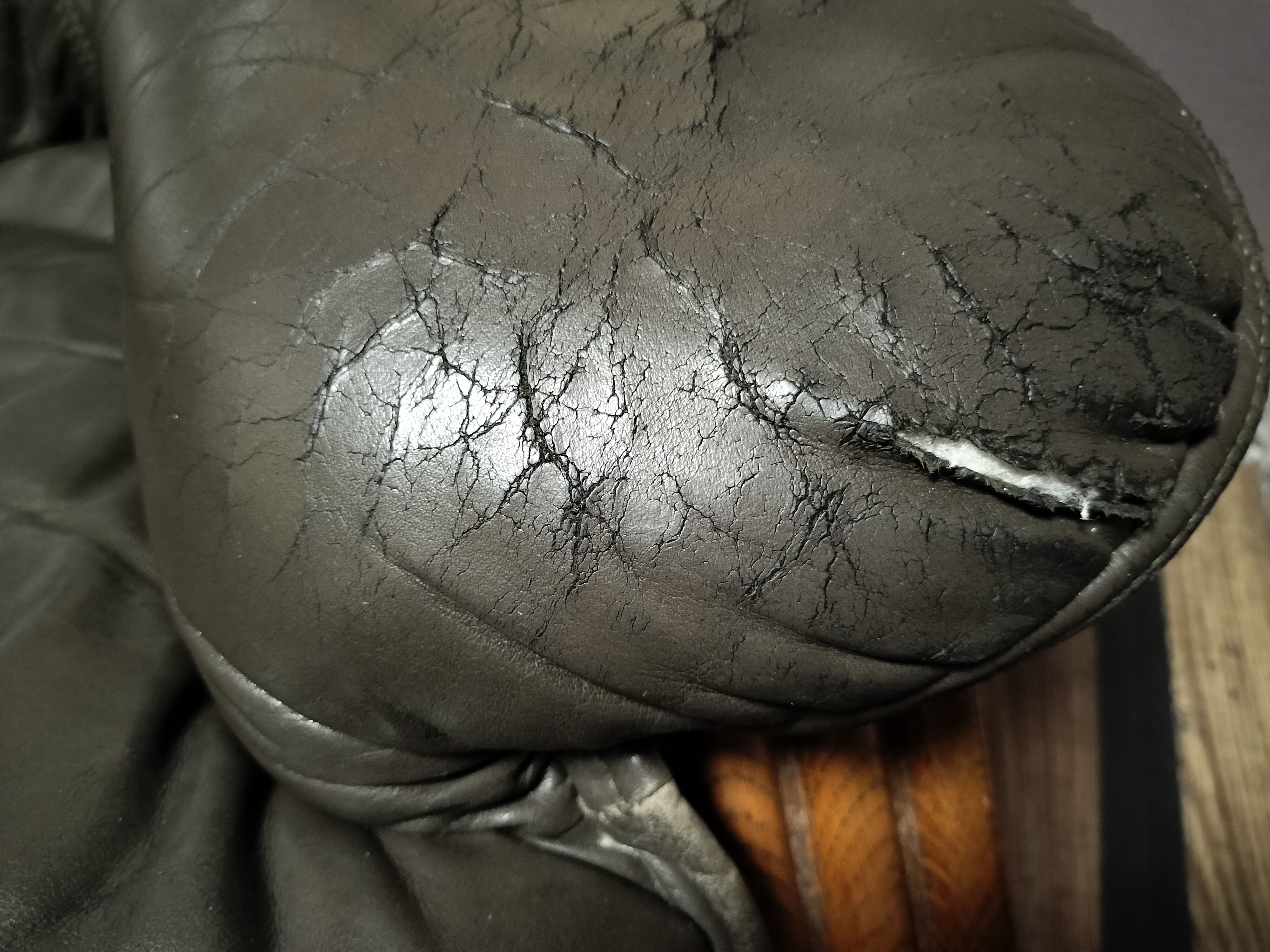 座面の前方の革が劣化してきています。