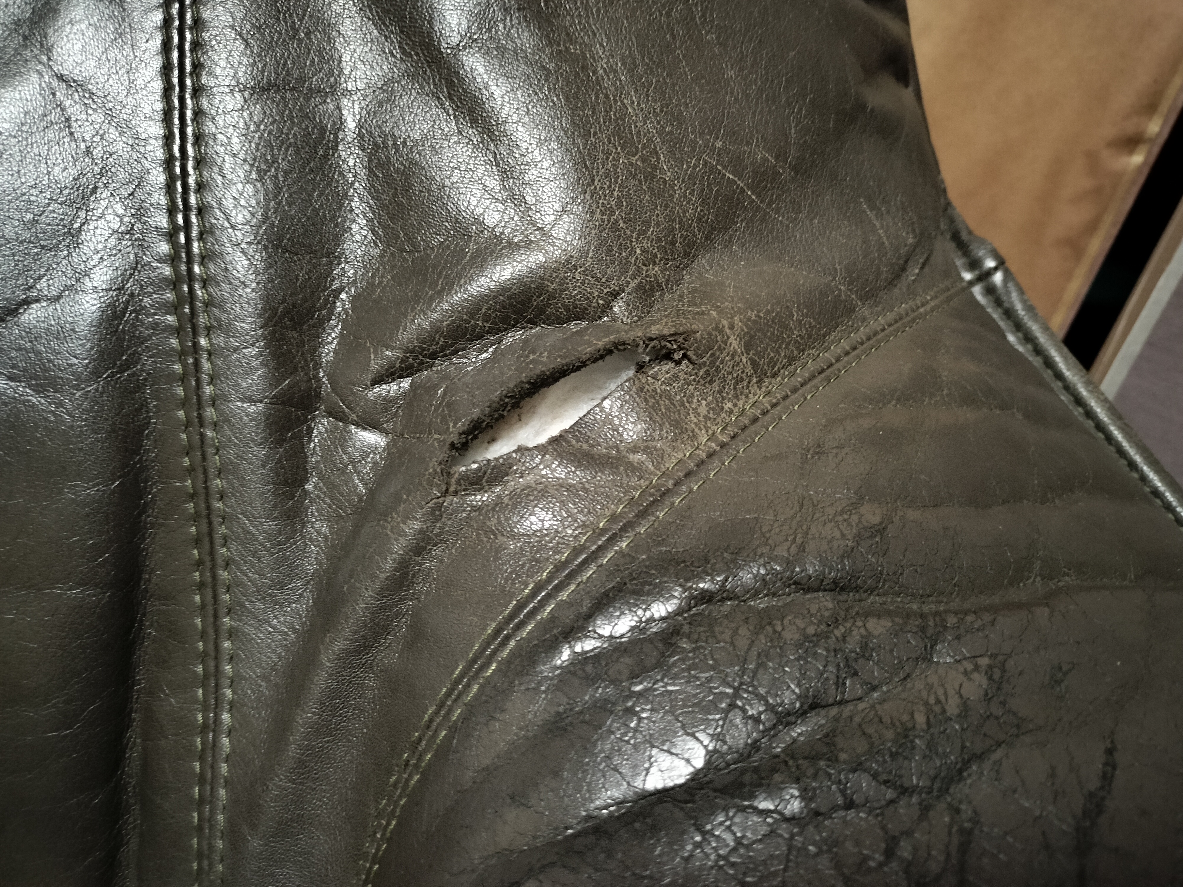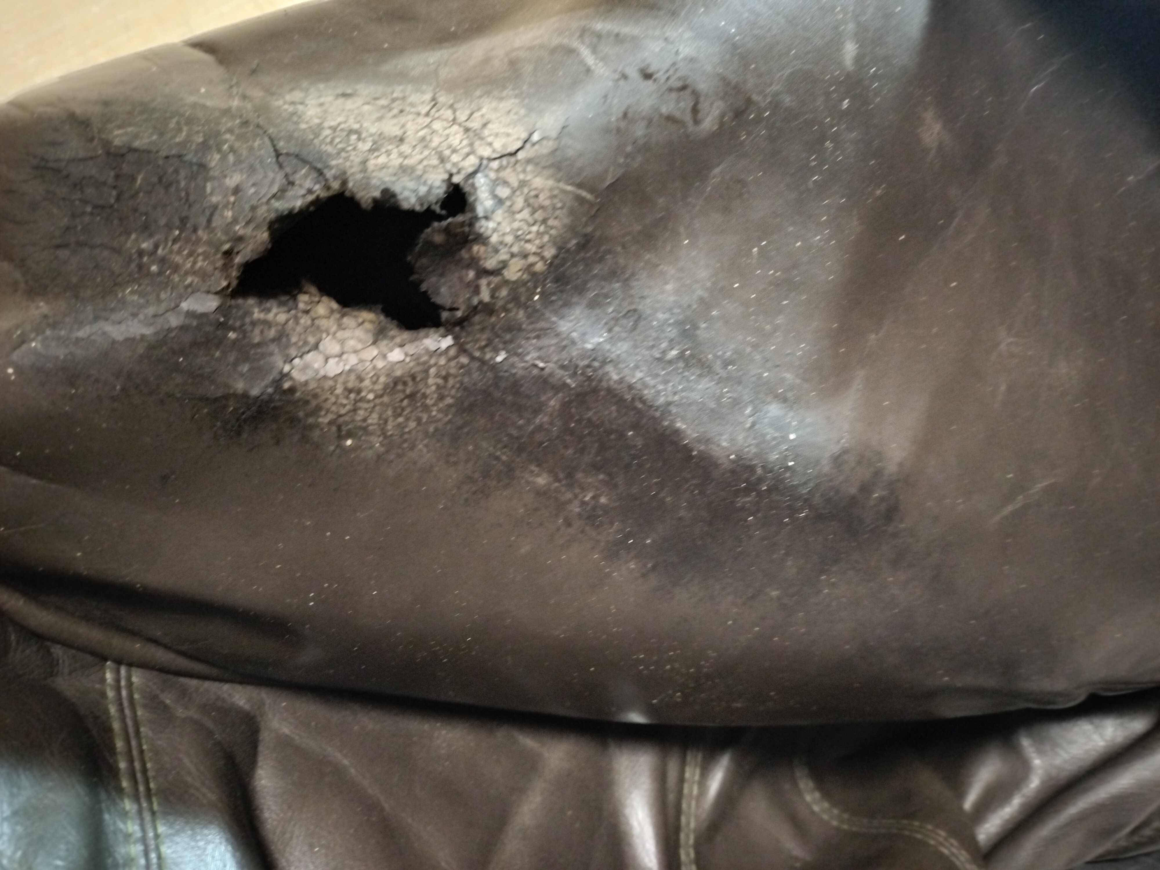 さすがの革研究所もここまで大きく 破れた革を修復することはできません。
