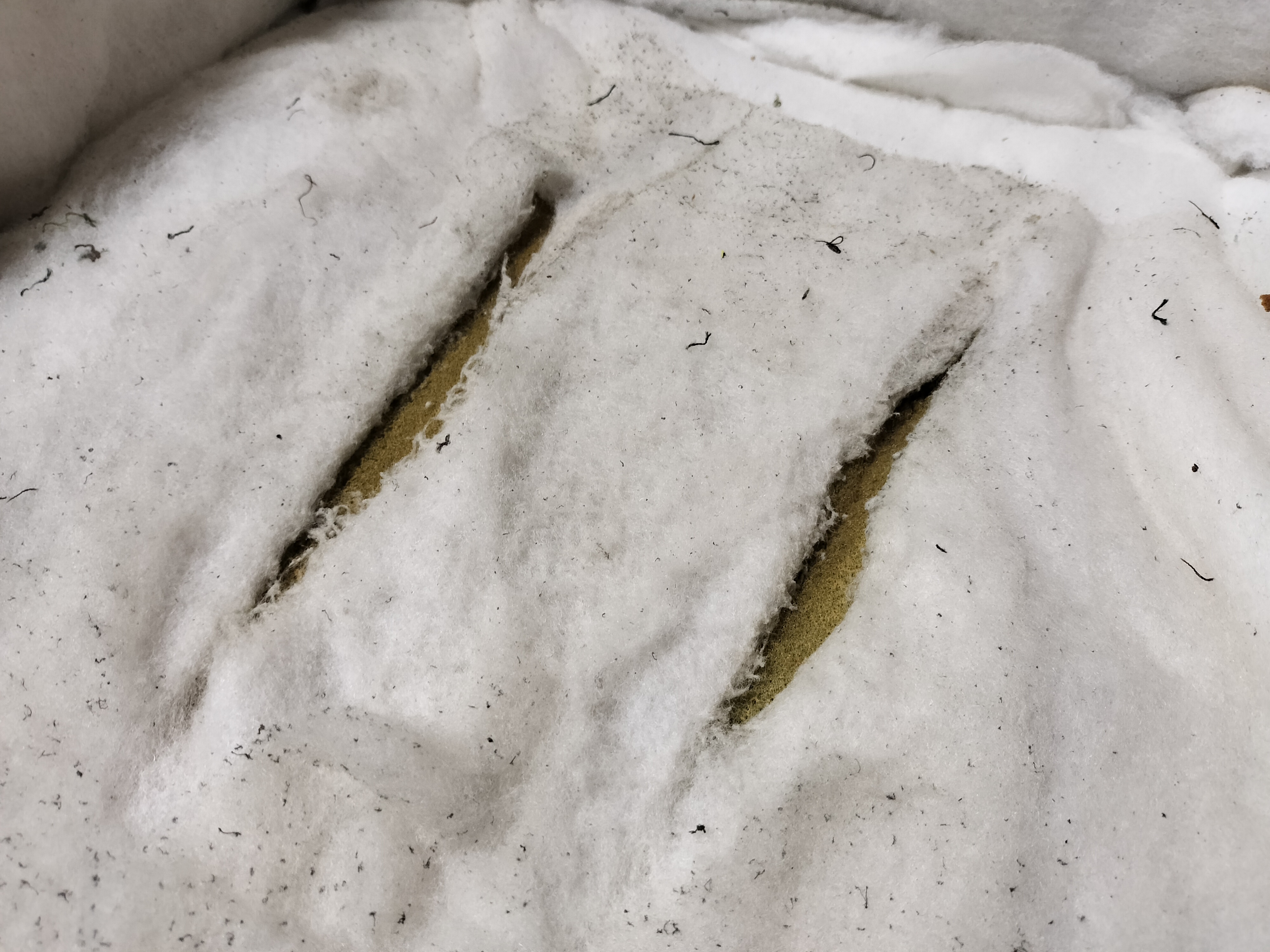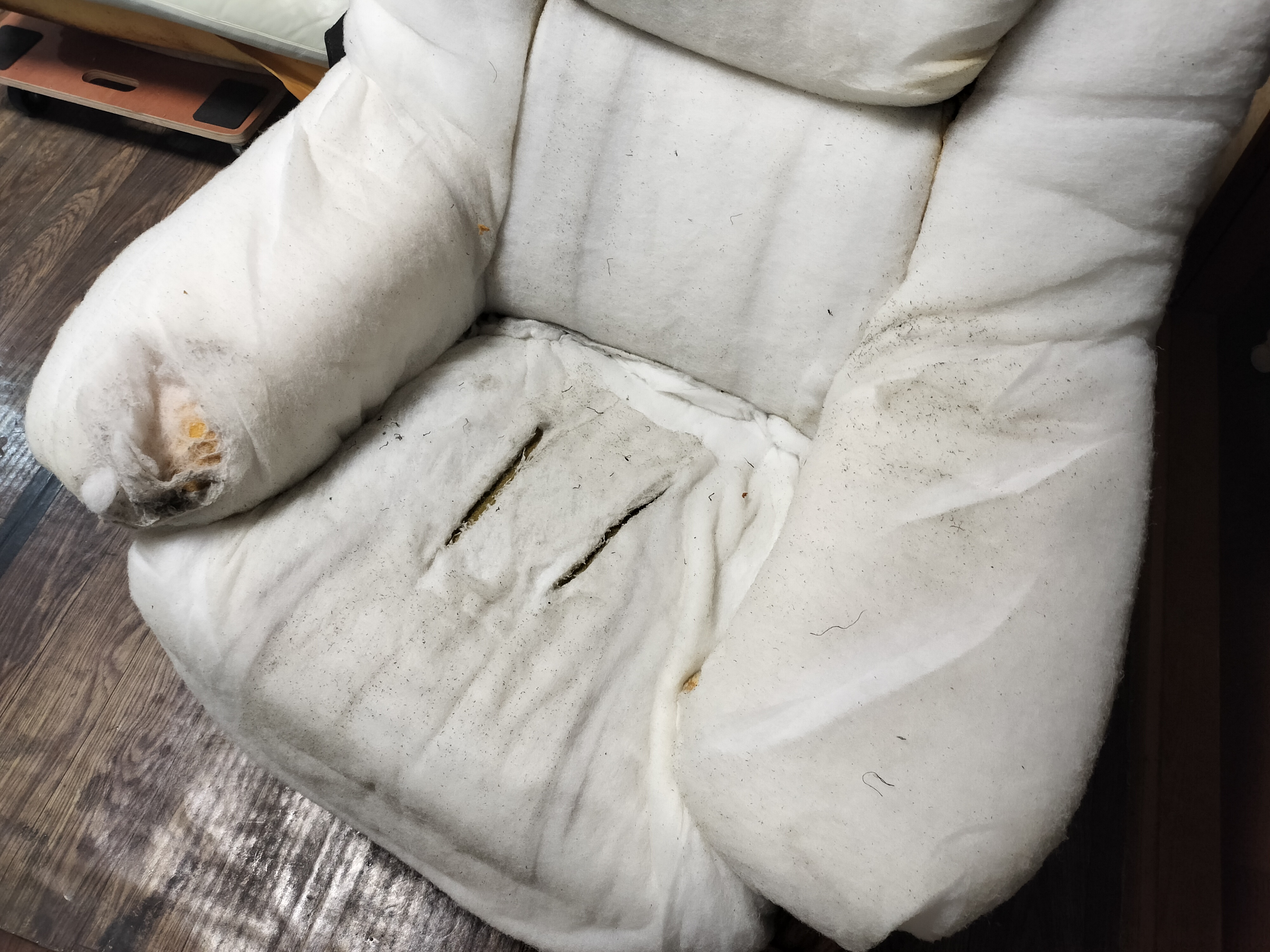 今回も破れてしまって中の 綿が大量に出てきてしまっています。