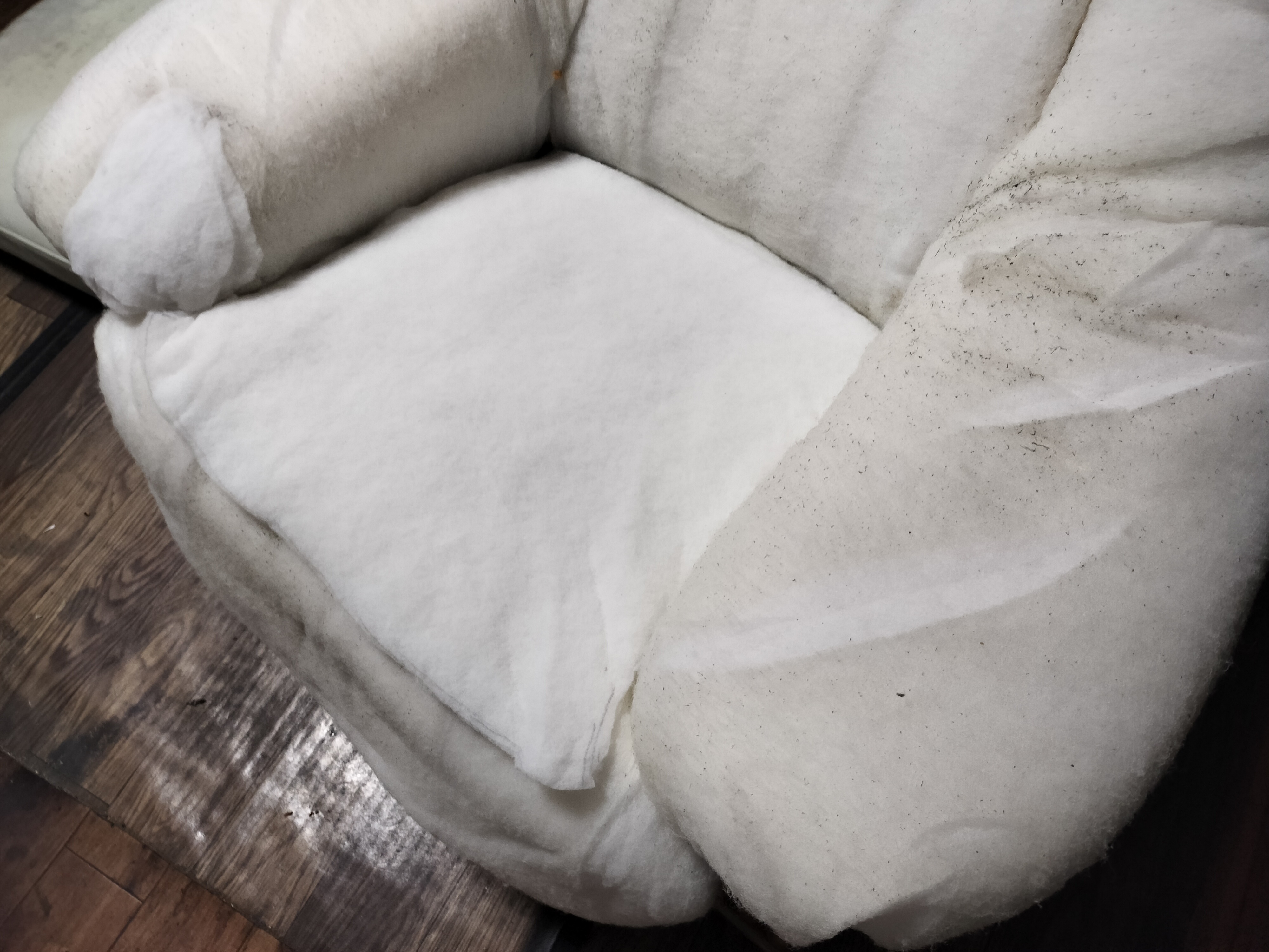 長く使っていれば当然 ウレタンスポンジがへたってきて 綿は潰されて小さくなっていきます、それに対し