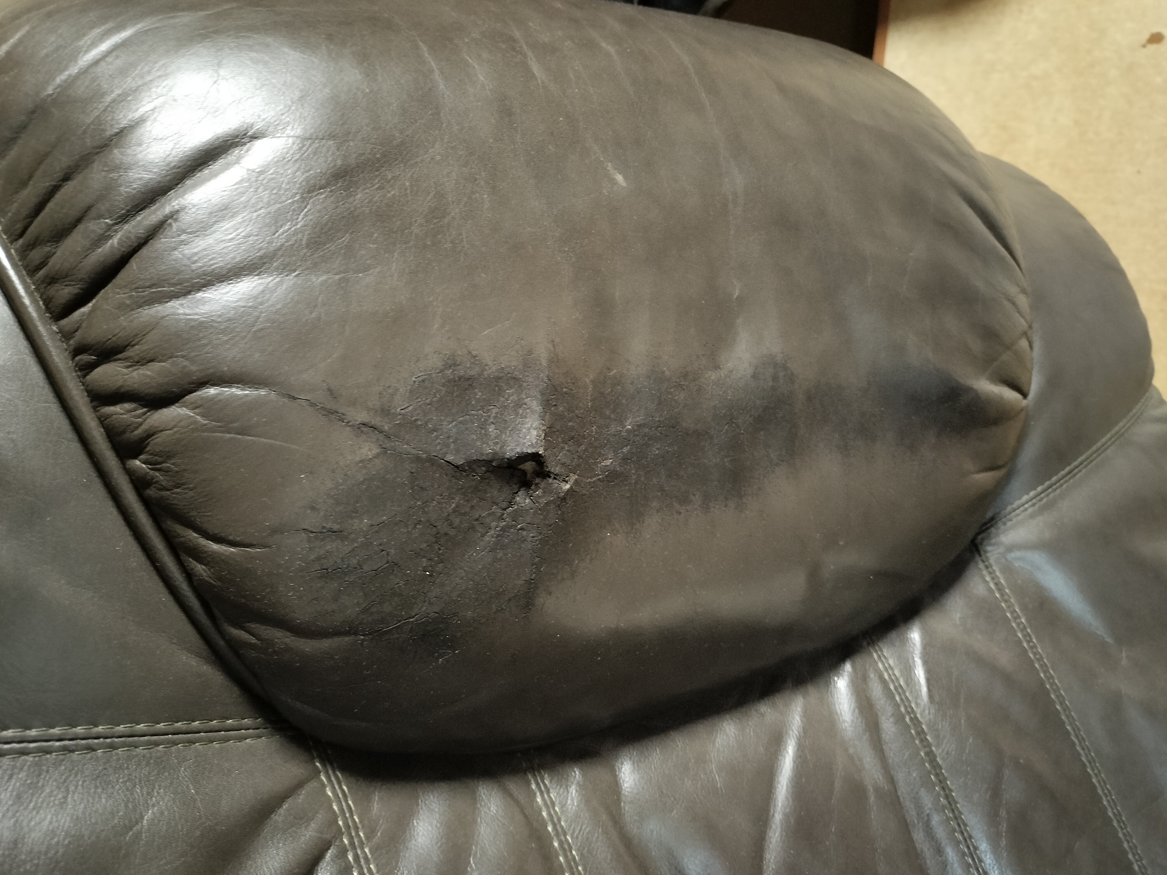 両側の肘掛けが大きく 破れてしまっているの と 頭の部分も結構大きく 避けてしまっています。