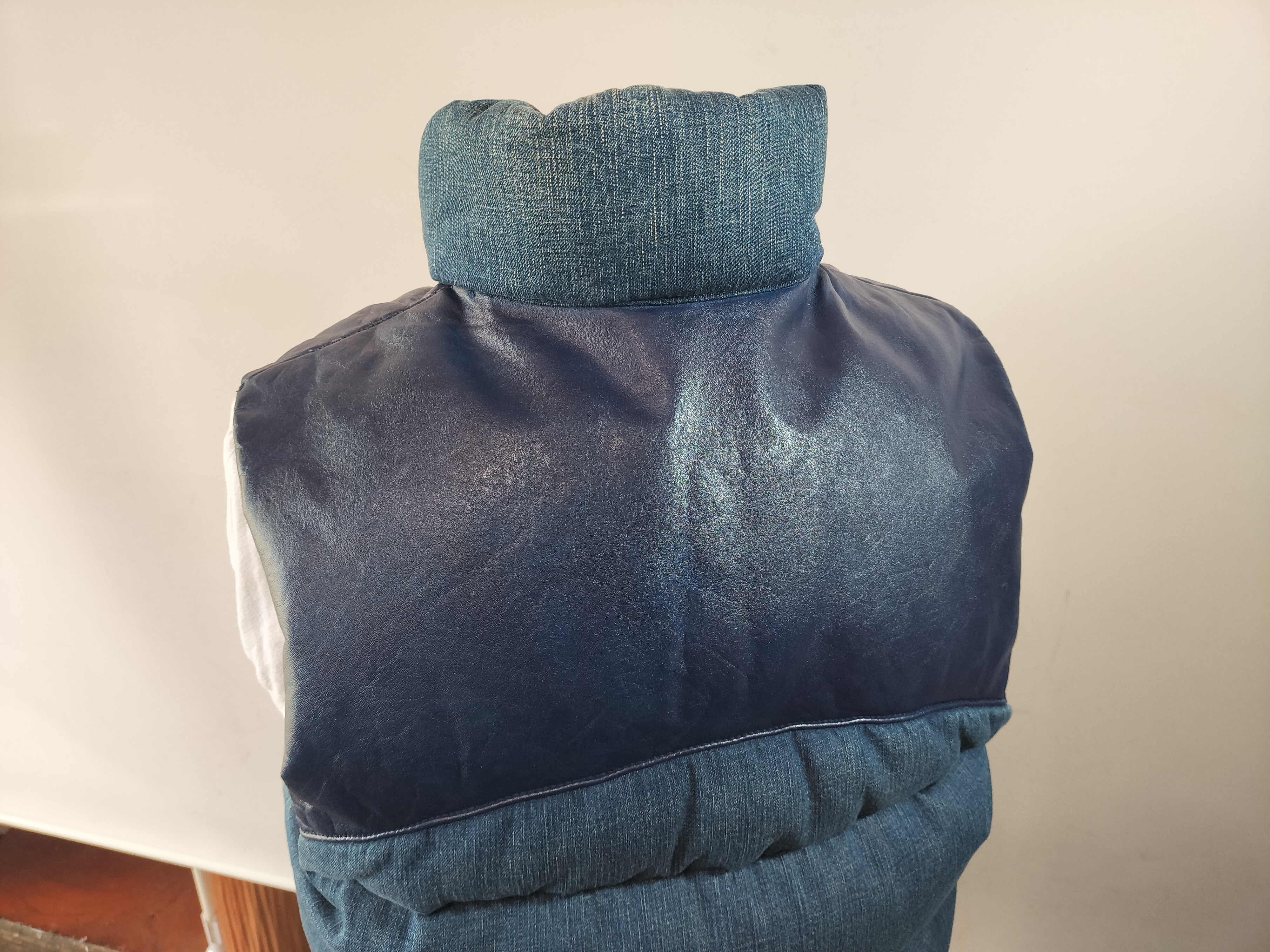 全体がデニム生地でヨーク部が革でできております。