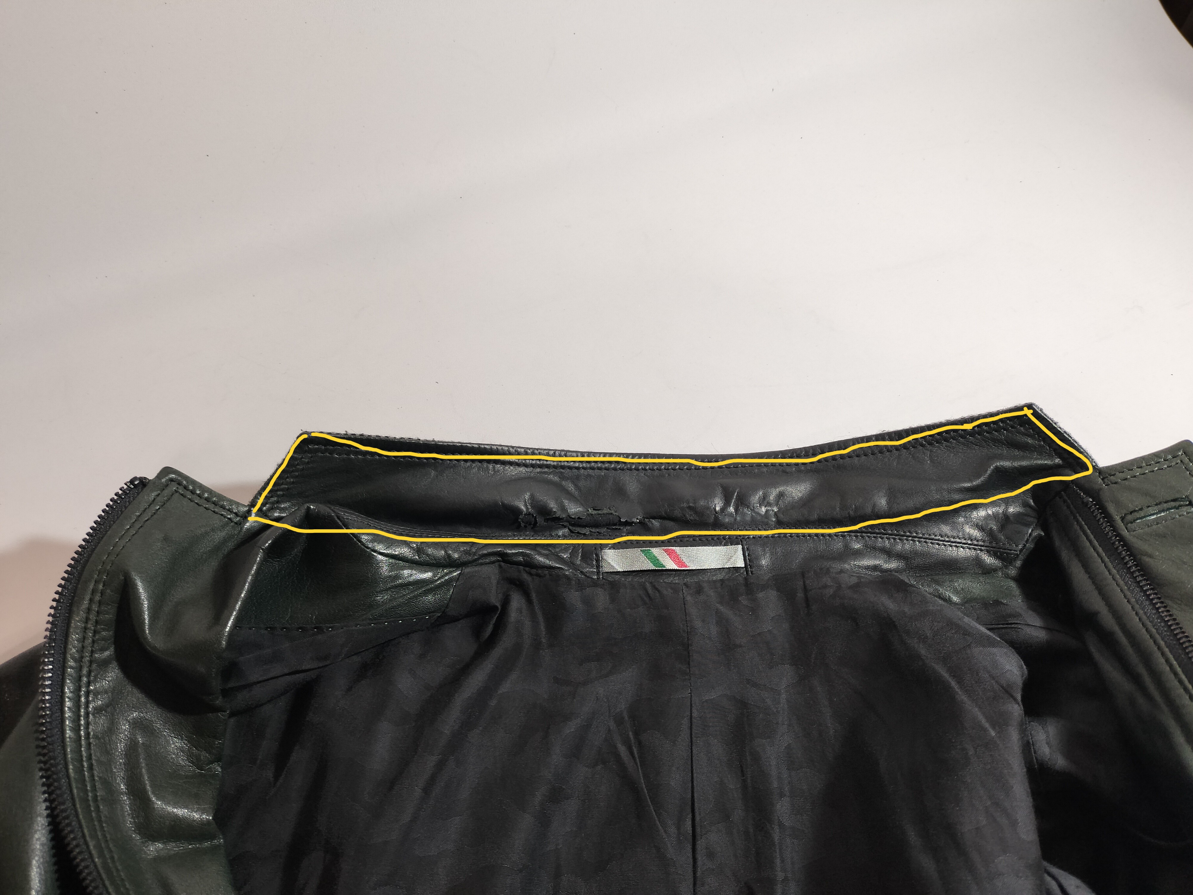 お父様のお気に入りの革ジャケットの襟が破れてしまって直さなければいけない状態に